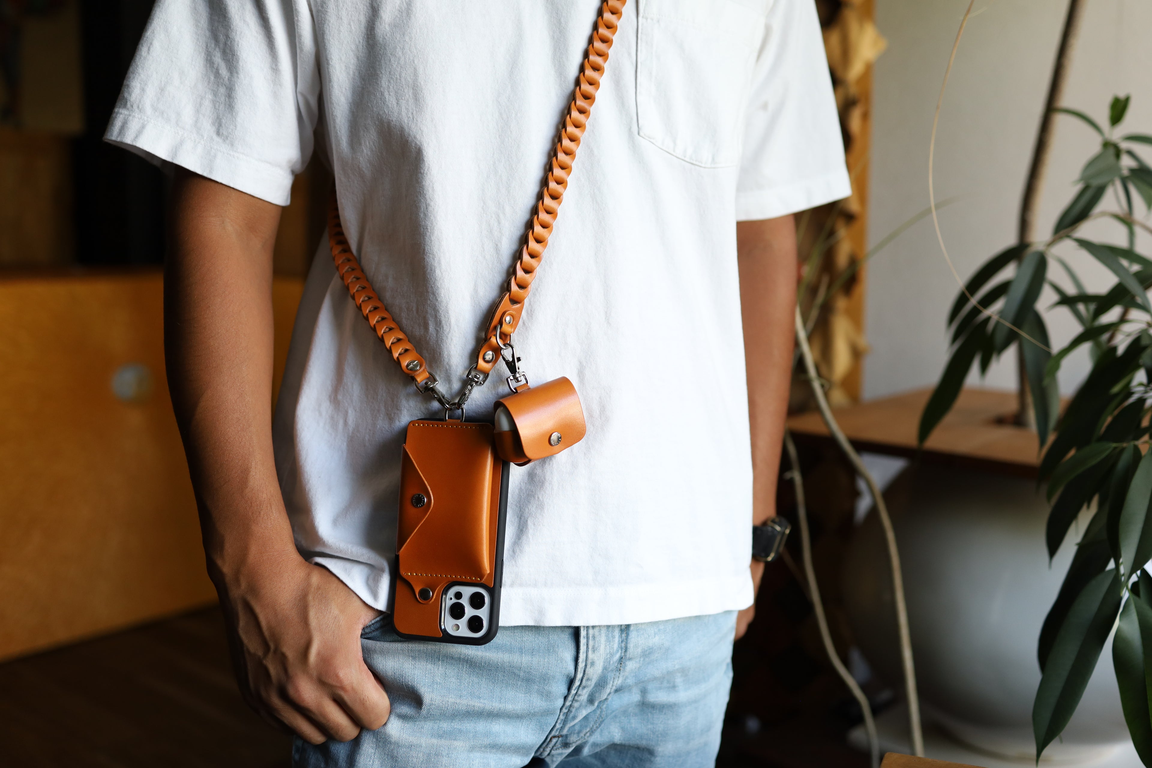 長期間の植物タンニンで鞣し、更にオイルを加えた「サドルレザー」を使用しております。